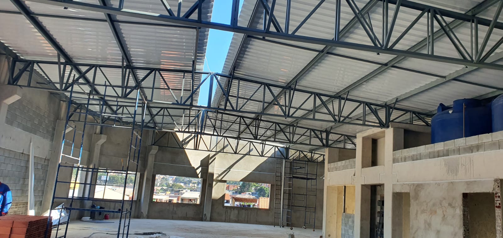 Com área total de 529 m² e peso de 5.348 kg, a cobertura foi desenvolvida para atender a um vão relativamente grande, com agilidade na execução — fator decisivo para o cliente, que precisava concluir a obra em curto prazo para viabilizar a inauguração da escola.