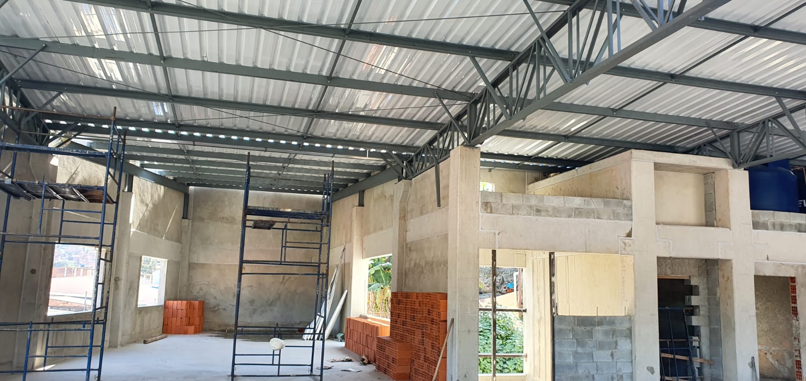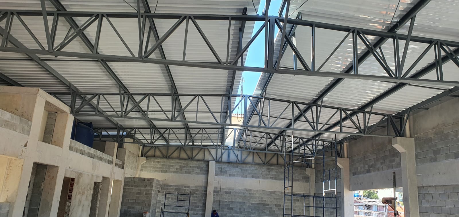 Neste projeto, realizamos a fabricação e montagem das estruturas metálicas da cobertura, fixadas sobre estrutura de concreto pré-moldado.