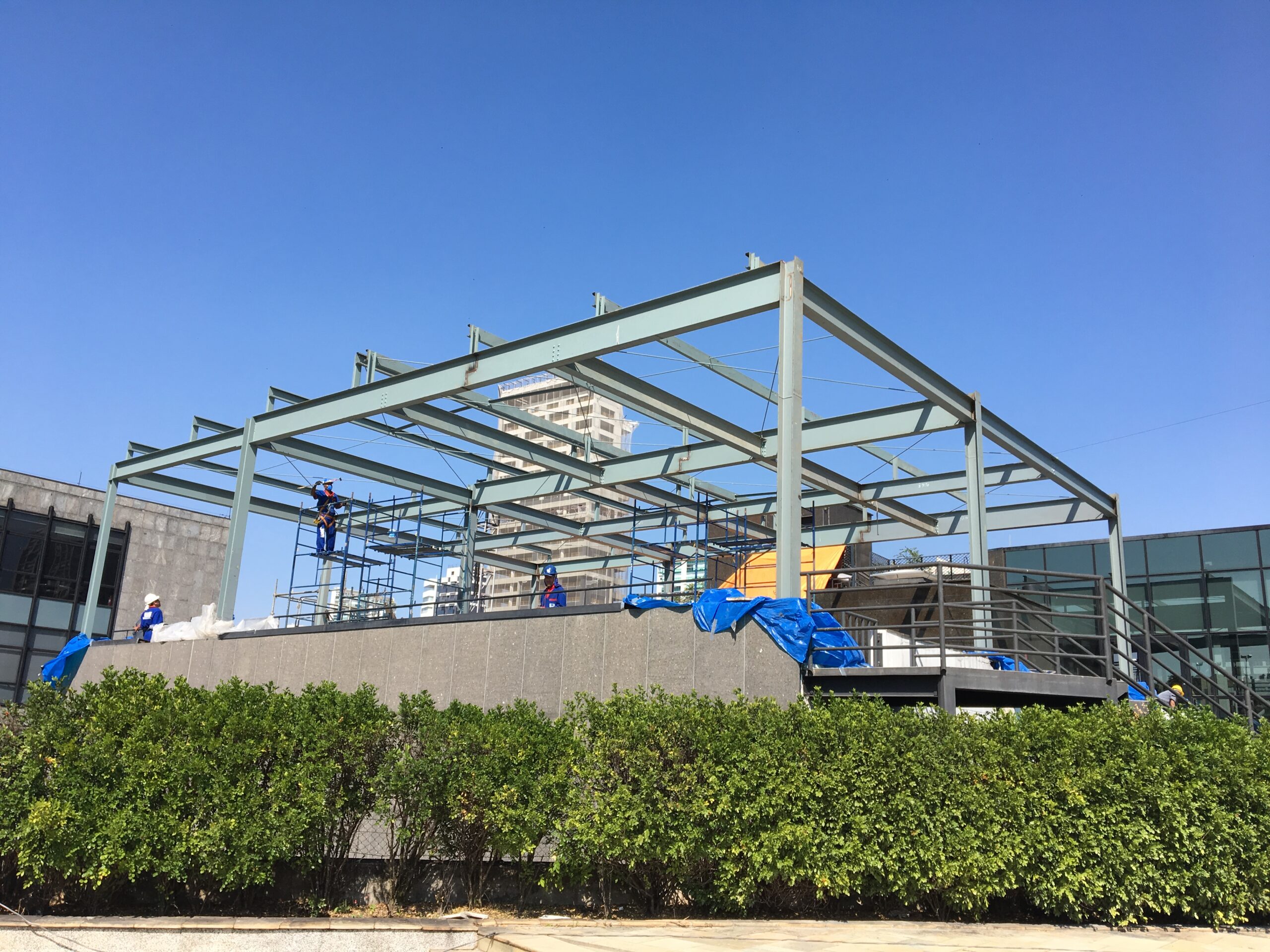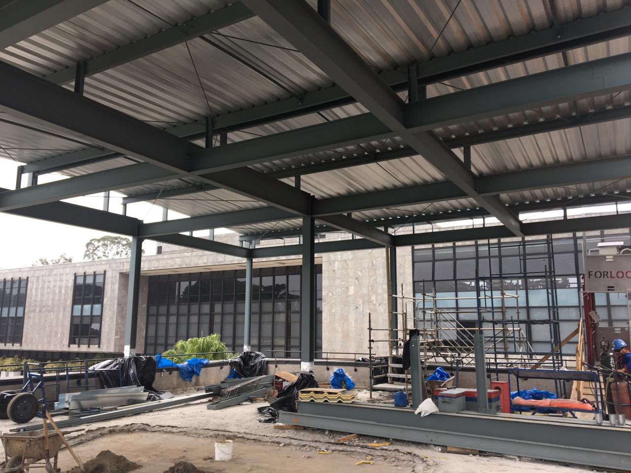 Foram 15.777 kg de aço instalados em uma área total de 285 m². A montagem foi realizada em um prazo extremamente curto, atendendo à urgência do cliente para a conclusão da reforma.