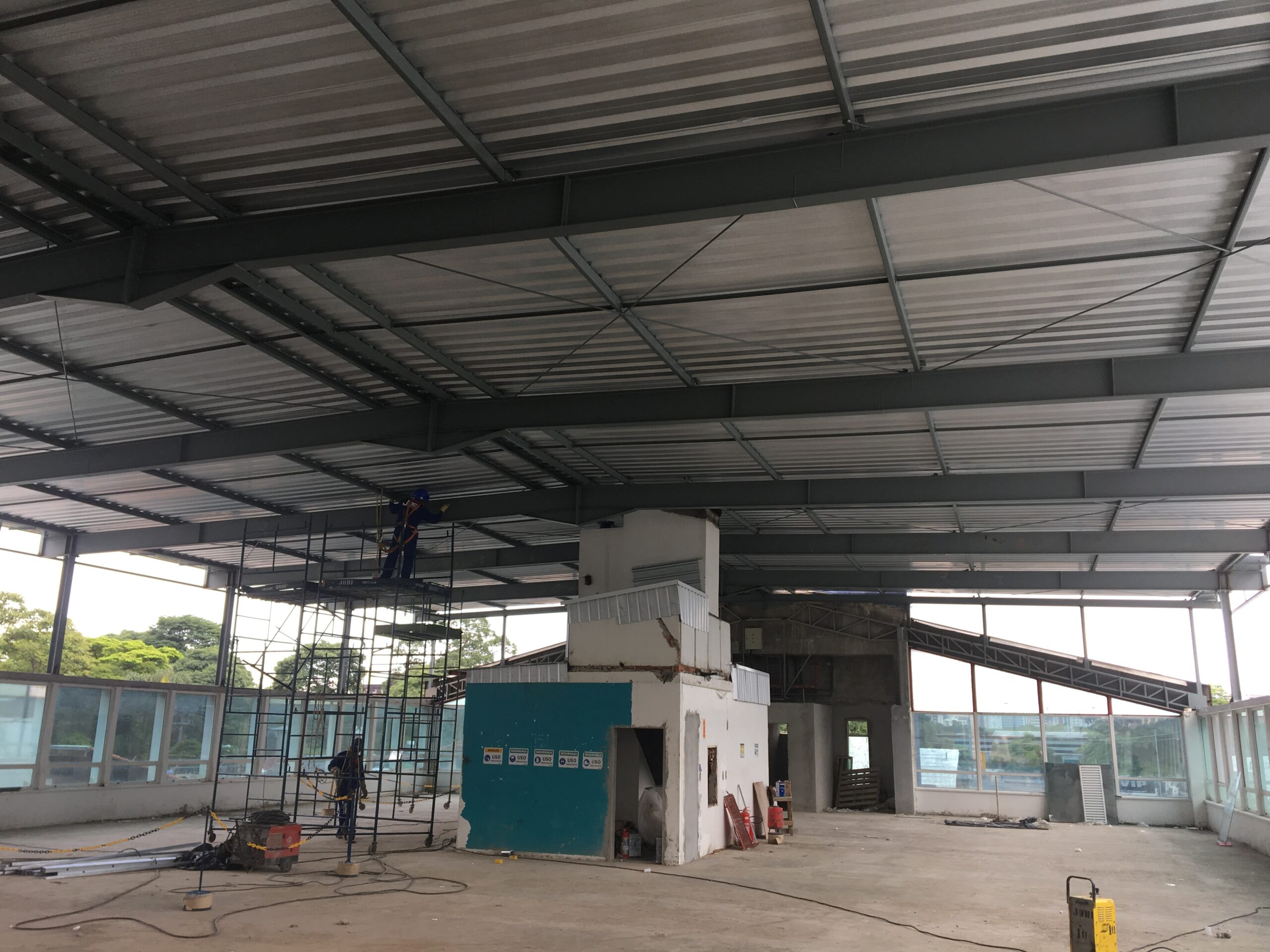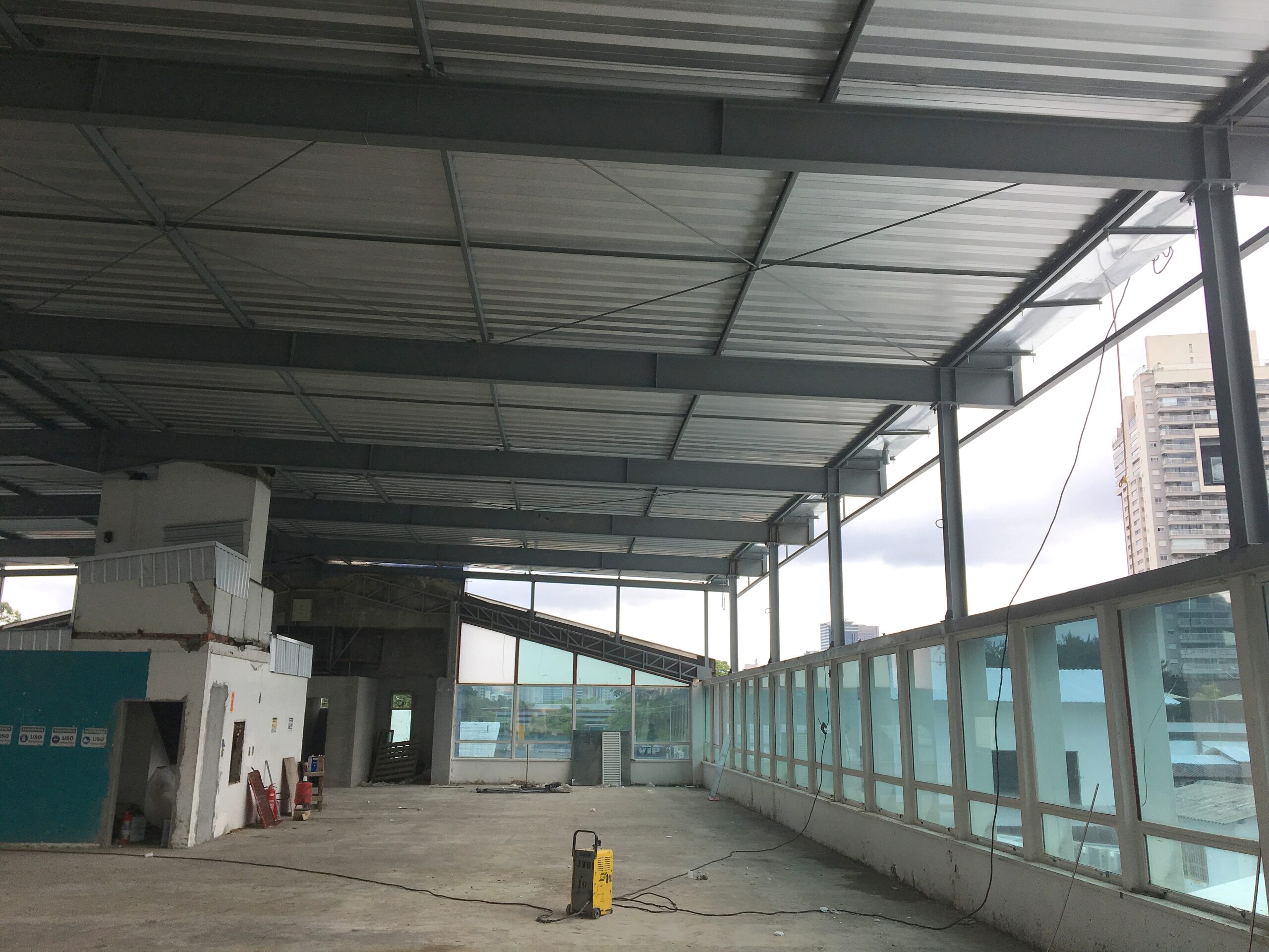 O maior desafio esteve no projeto estrutural, devido ao grande vão livre que não permitia pilares intermediários. Por isso, a escolha criteriosa dos perfis foi fundamental para garantir segurança e desempenho da estrutura.