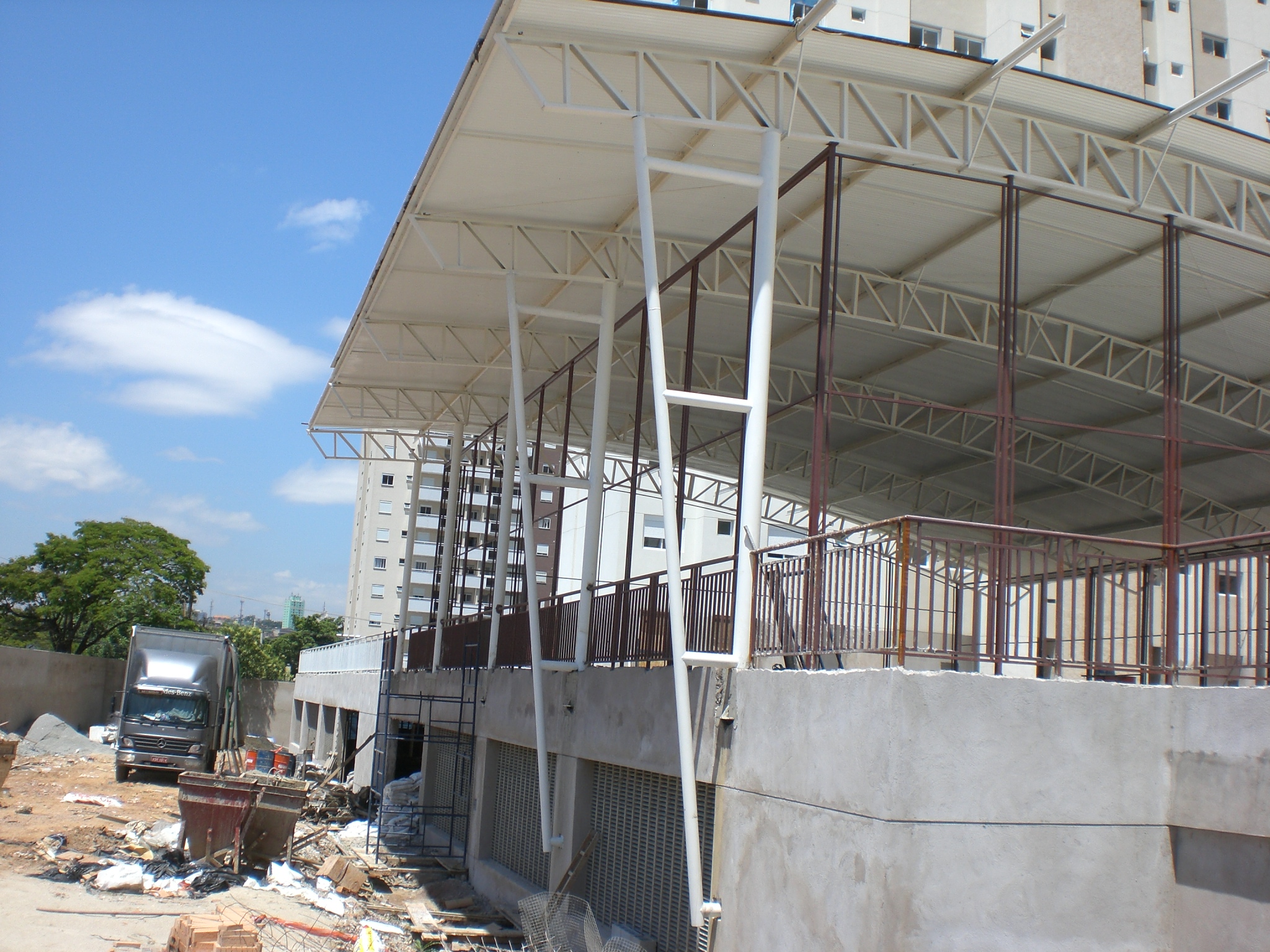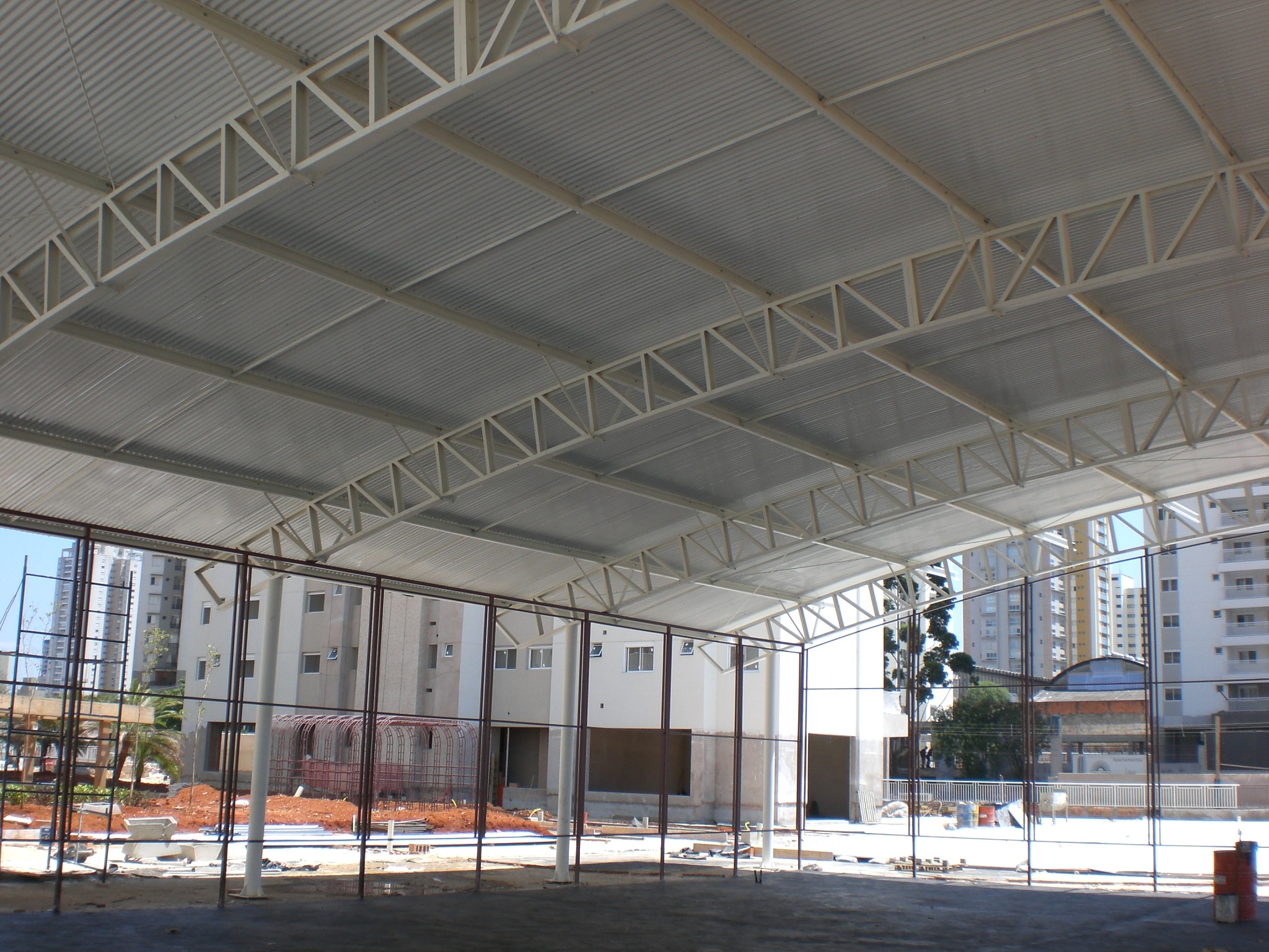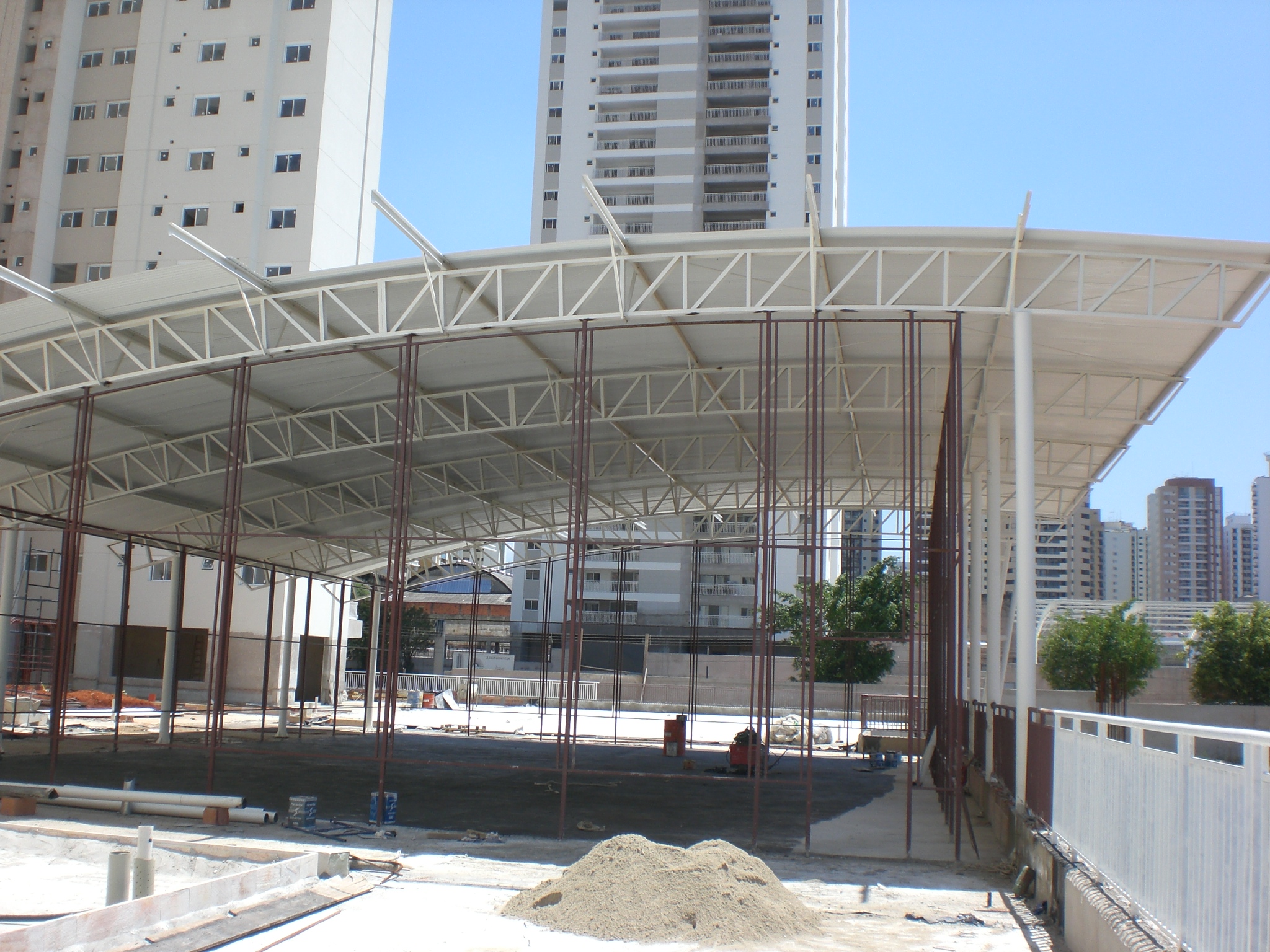 Nestes dois condomínios residenciais, executamos a fabricação e montagem das estruturas metálicas para as coberturas das quadras poliesportivas.