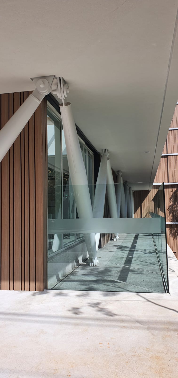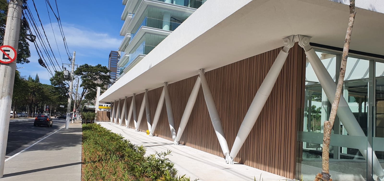 Esses pilares não só sustentam a laje superior como também são protagonistas na estética da fachada, ganhando diversos elogios no meio da engenharia e arquitetura.