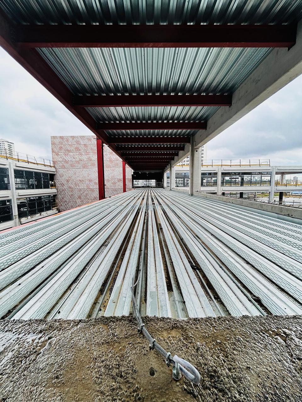 Com 30 e 20 metros de extensão respectivamente, as estruturas foram projetadas para interligar os blocos de concreto pré-moldado, utilizando piso em steel deck e sistema 100% parafusado, garantindo agilidade, precisão e excelente acabamento.