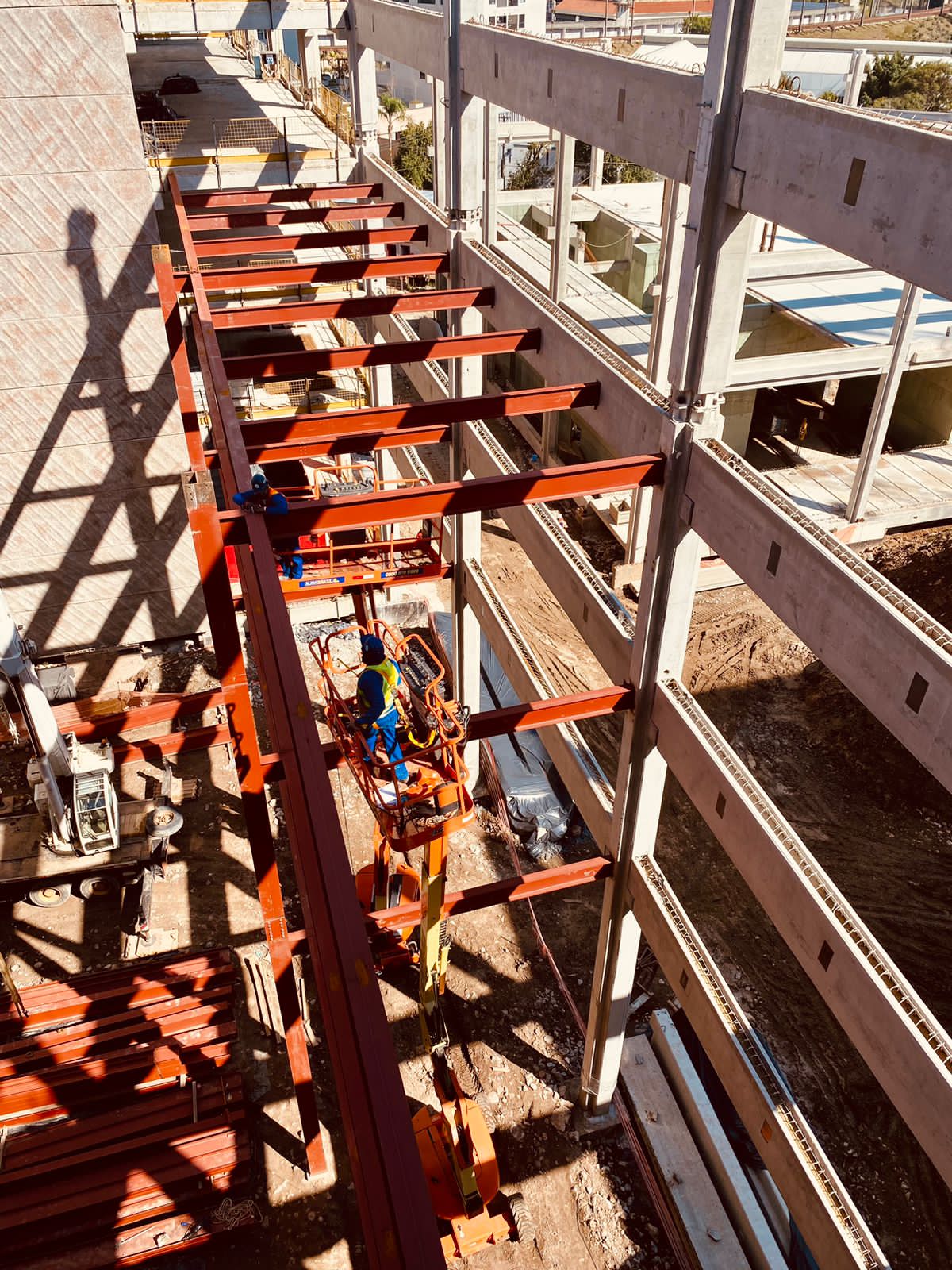Neste empreendimento de grande porte, executamos duas passarelas metálicas com seis pavimentos cada, totalizando aproximadamente 90 toneladas de aço.