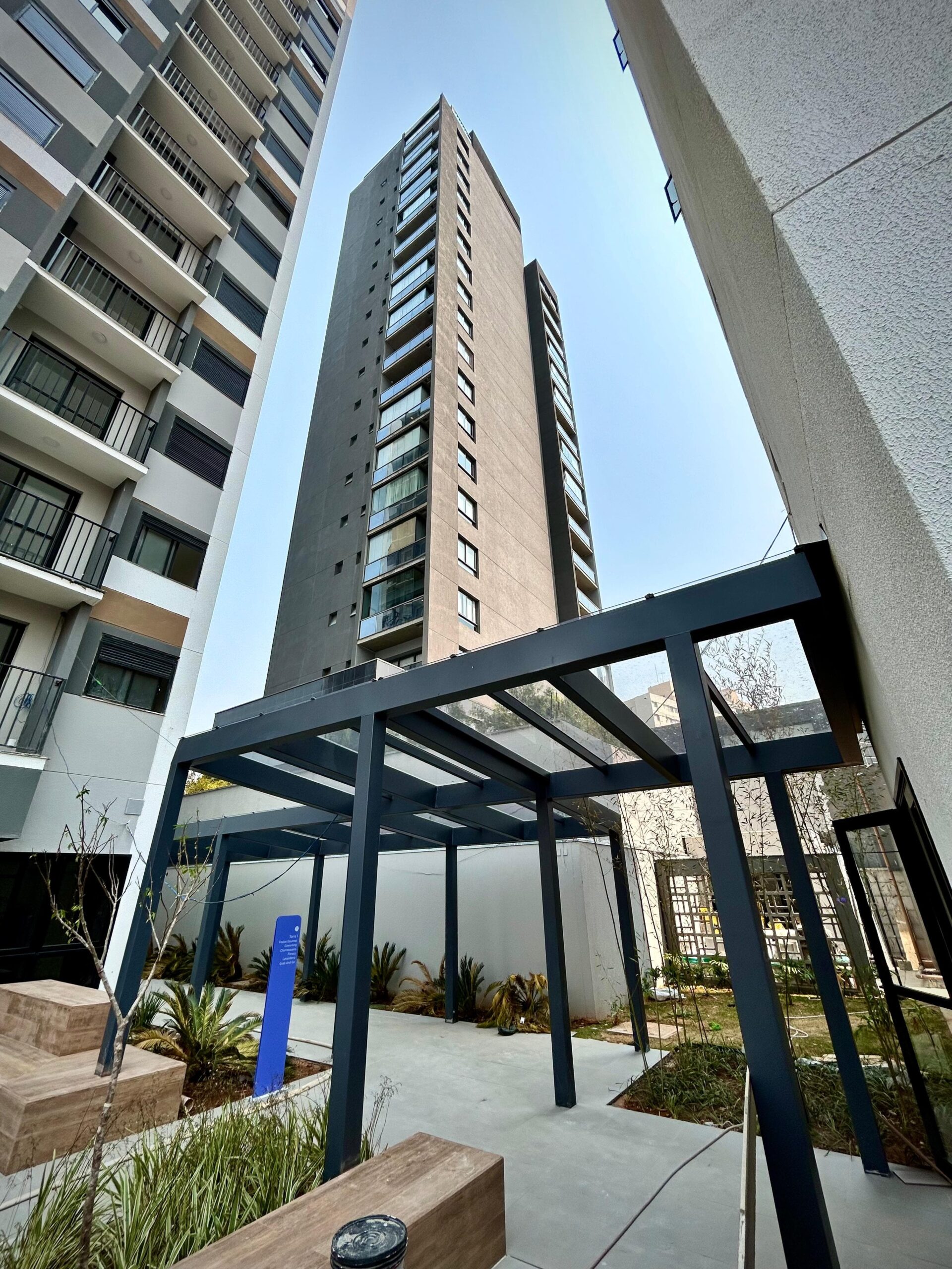 Localizado no bairro Campo Belo, o pergolado metálico combina charme, modernidade, robustez e um visual marcante, trazendo identidade arquitetônica e valor estético ao projeto.