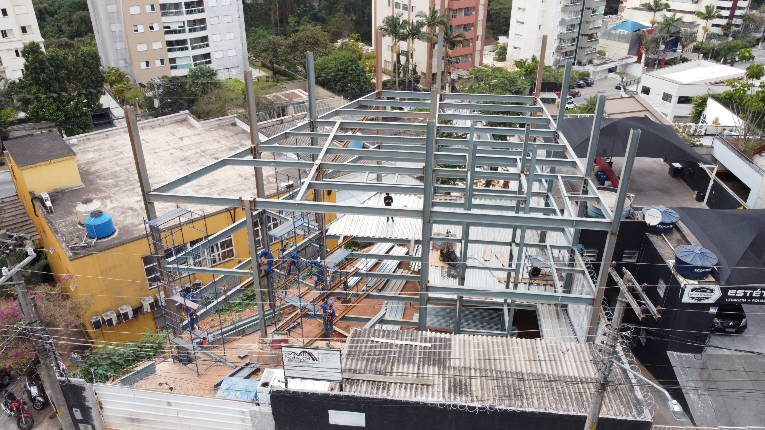 Executamos a estrutura metálica completa deste edifício localizado no Morumbi, composto por 4 pavimentos e fachada ripada, totalizando aproximadamente 50 toneladas de aço.